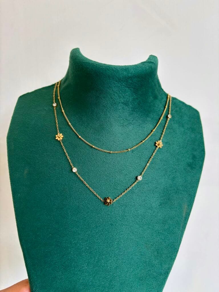 Beautiful double layer flower design Golden Necklace 😍
