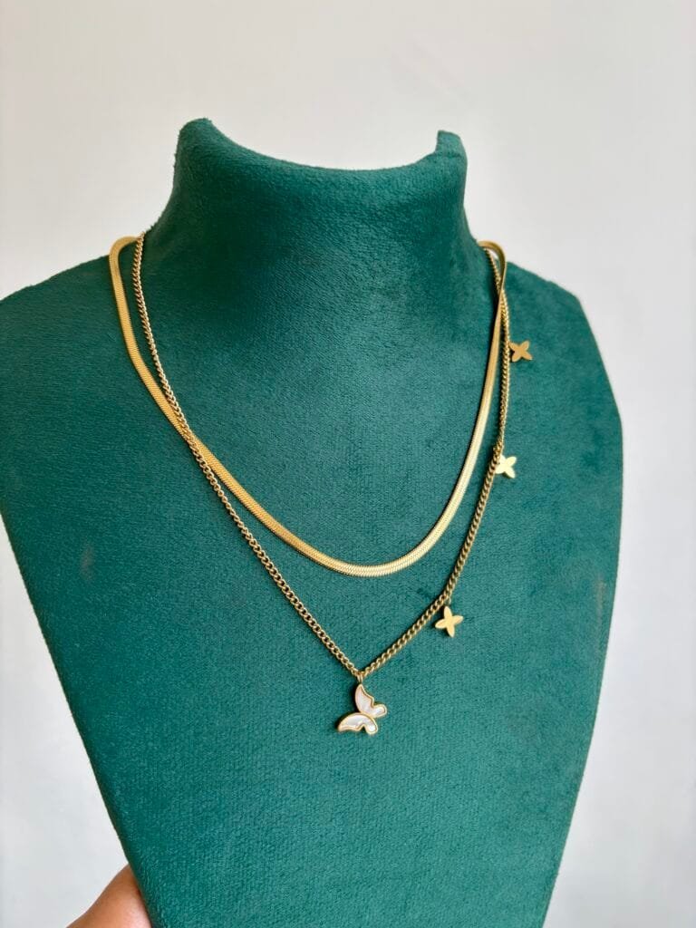 Beautiful Double Layer butterfly design 18kt Golden Necklace😍1938