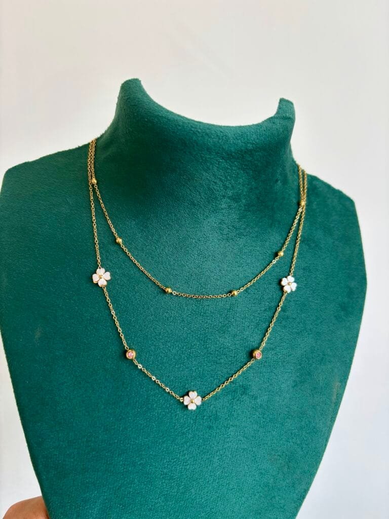 Beautiful double layer white flower design Golden Necklace 😍