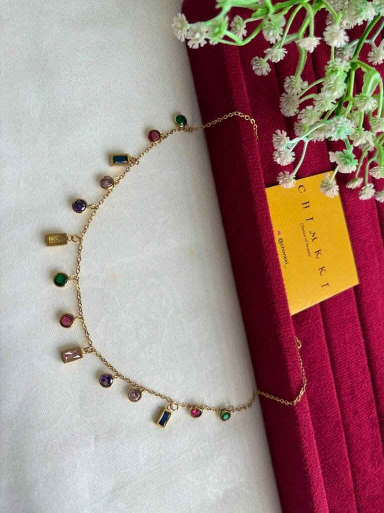 Beautiful Multicolour stone charms Golden Necklace ✨1076