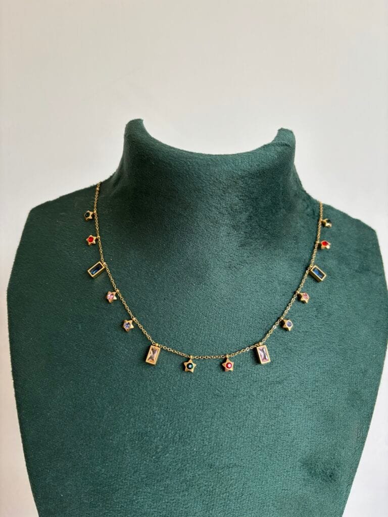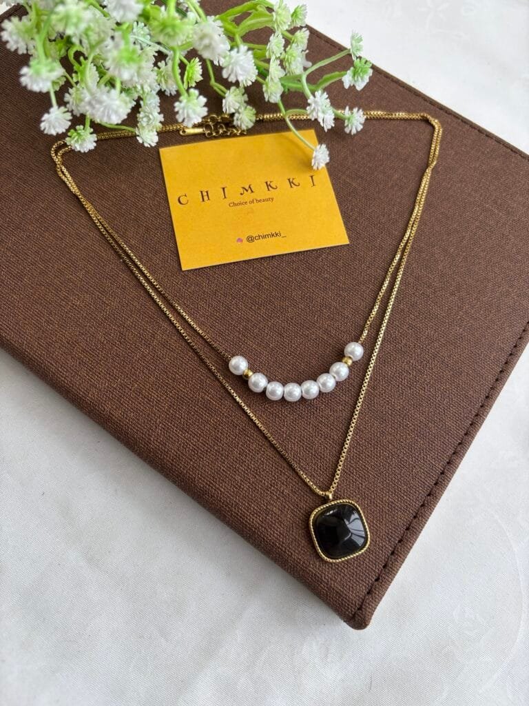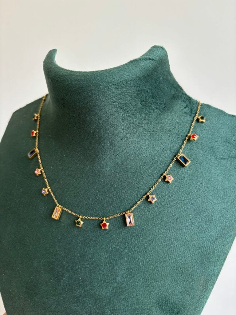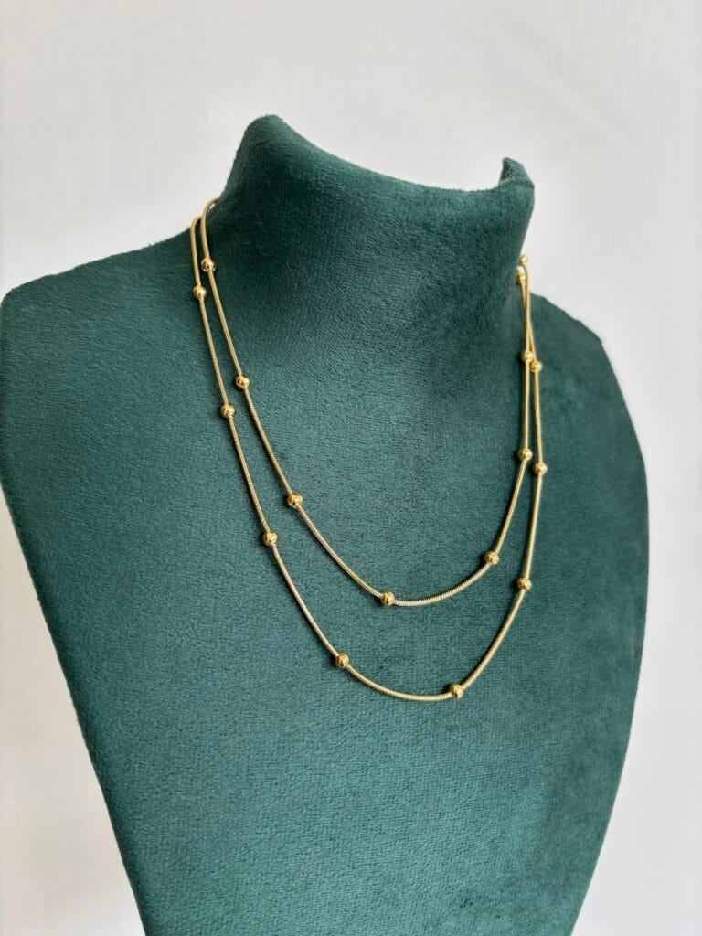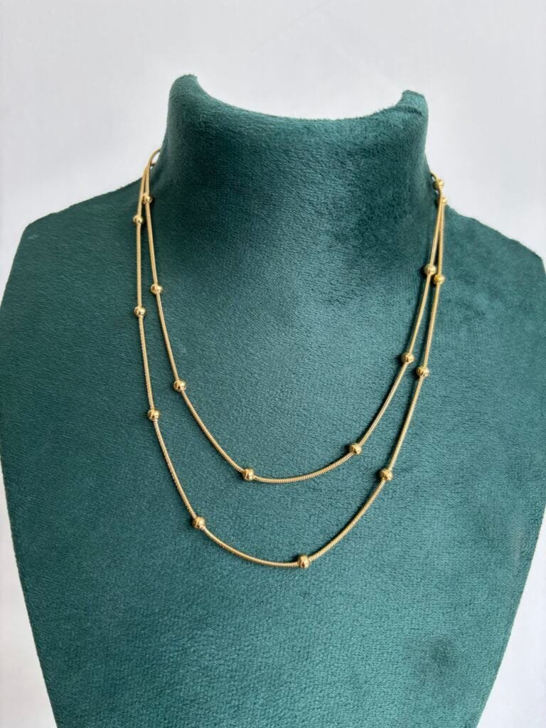 Stainless steel Double layer Green stone Golden Necklace✨1232