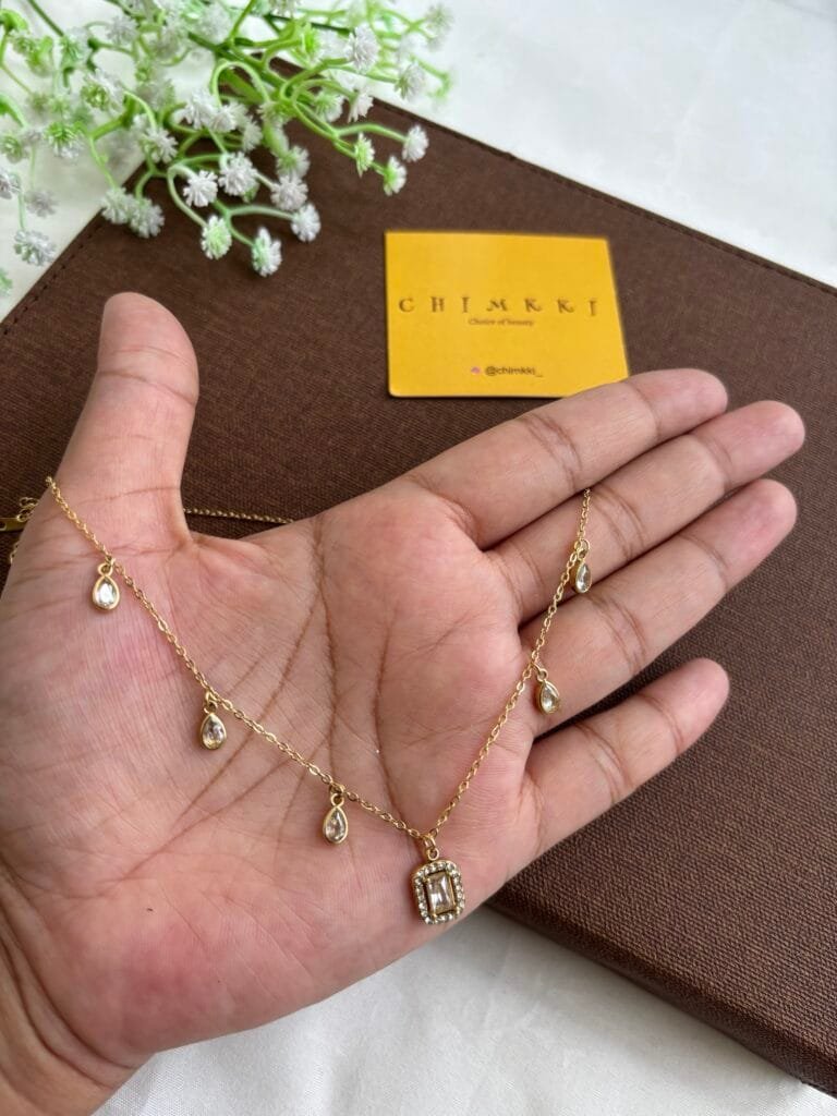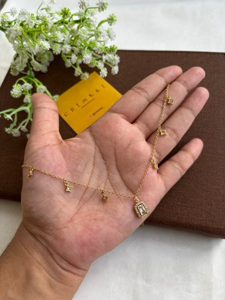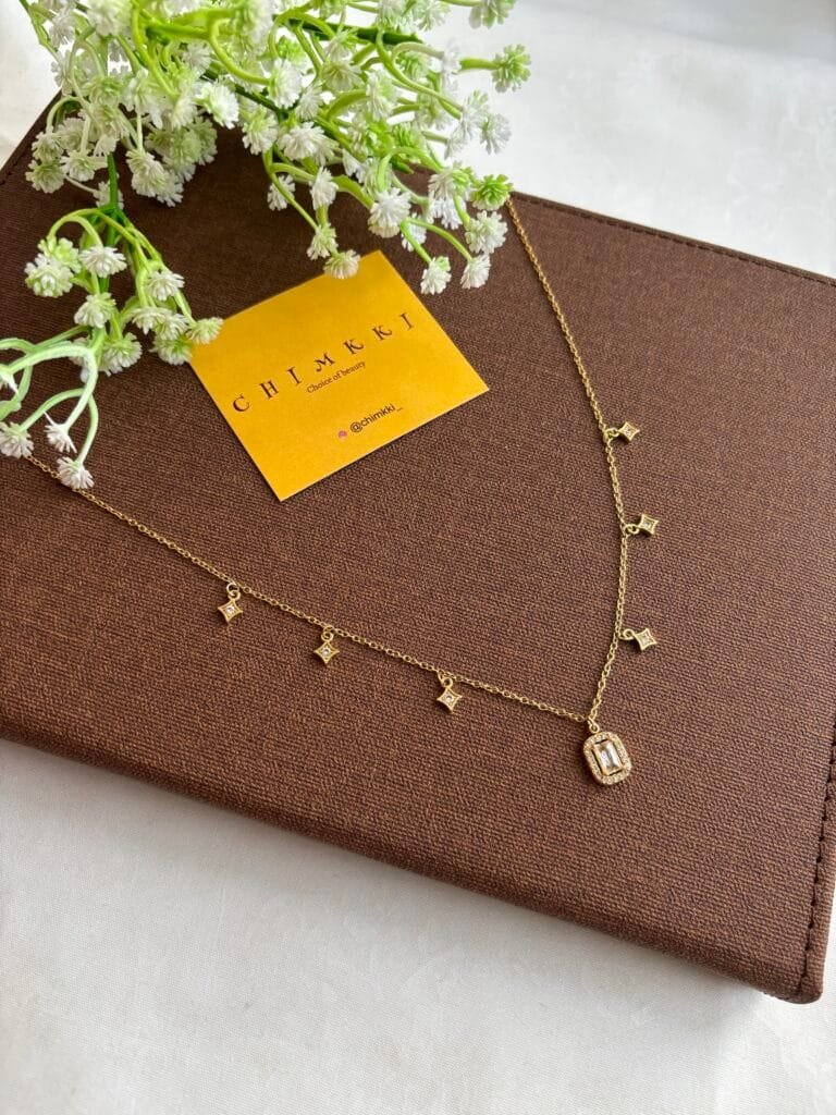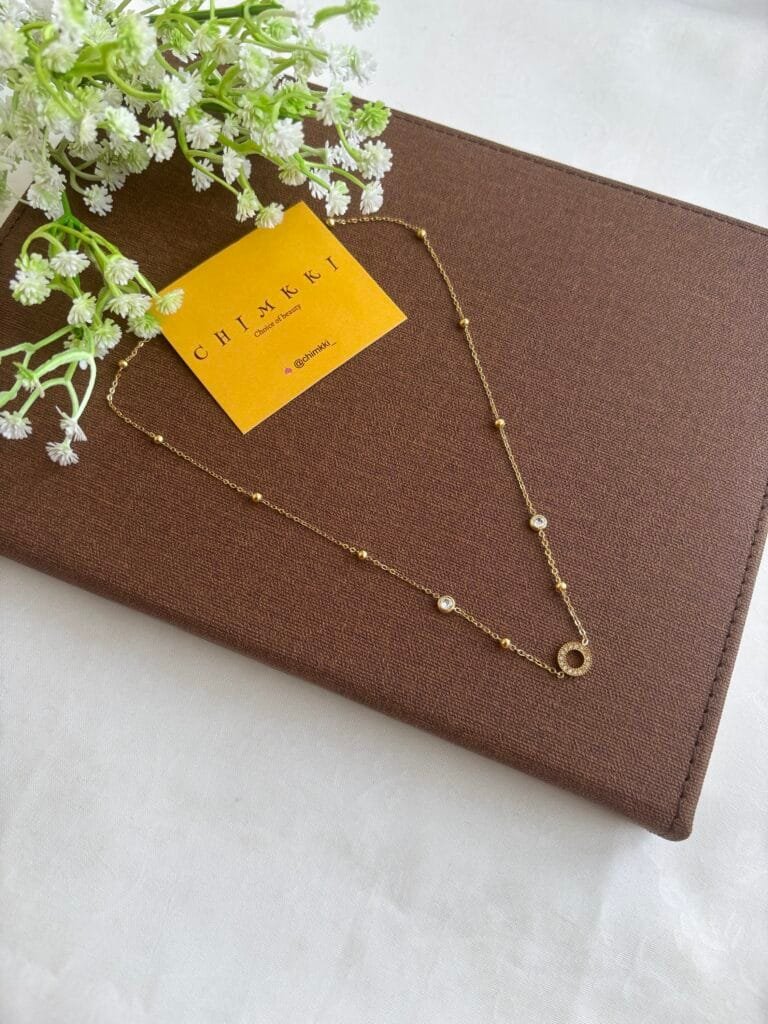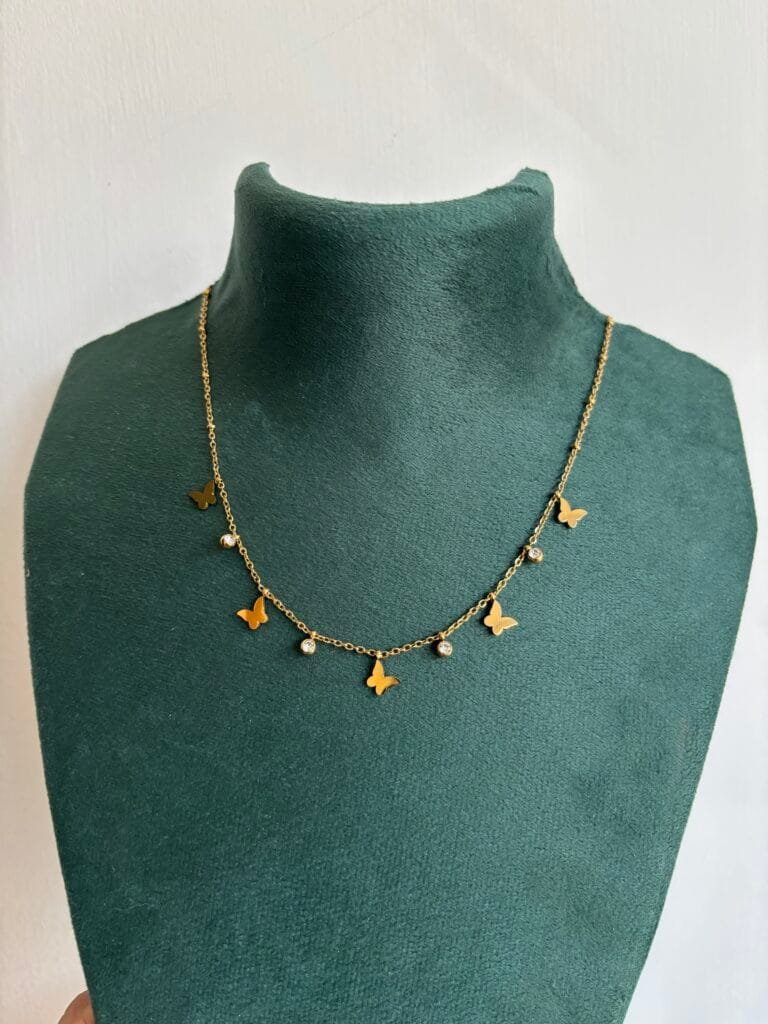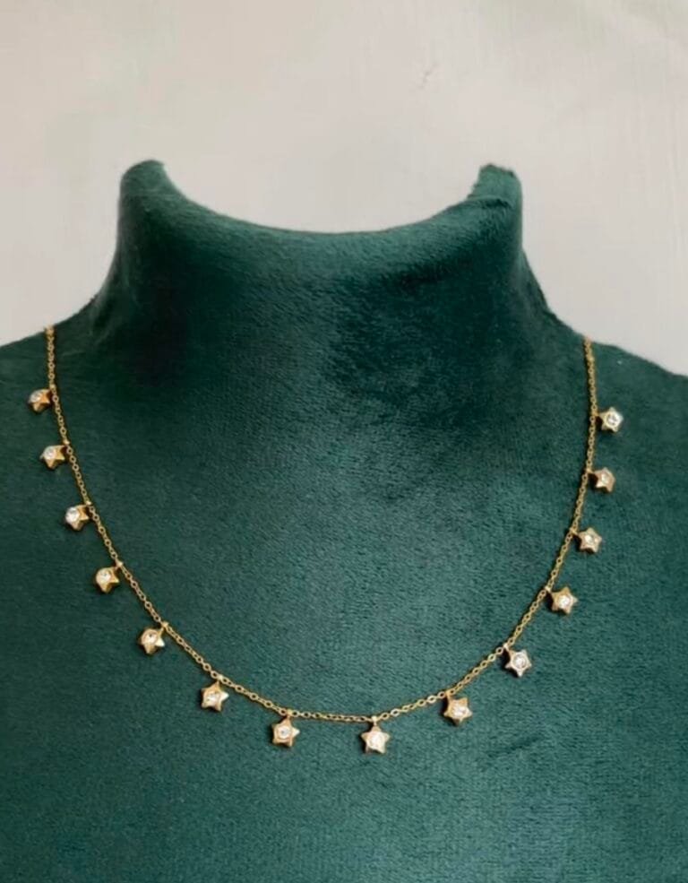 Stainless steel Double layer Green stone Golden Necklace✨1232