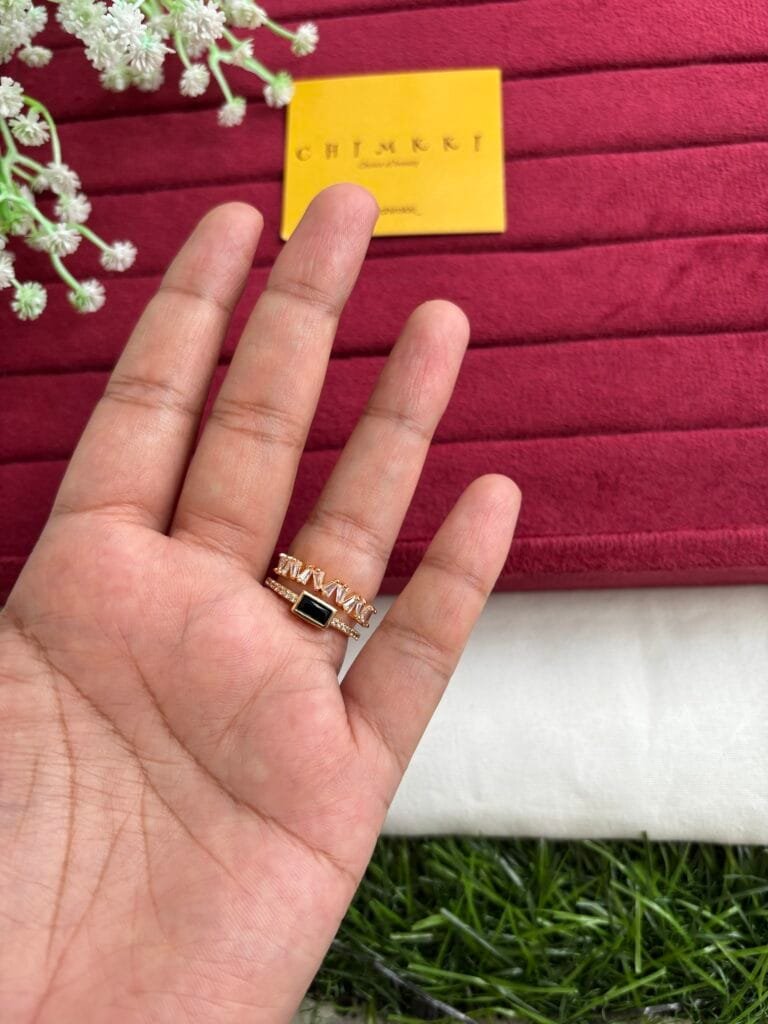 Trendy Rectangular green stone Adjustable Ring♥️ 1287