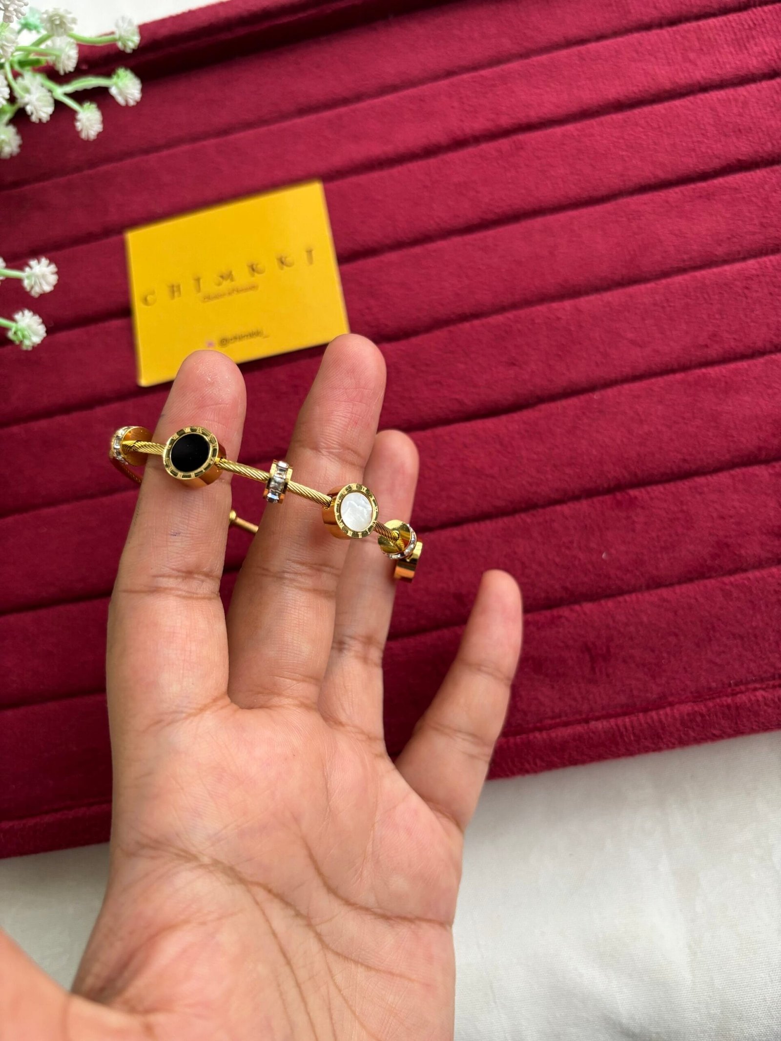 Stainless steel Beautiful black and white circle design open bangle✨1387