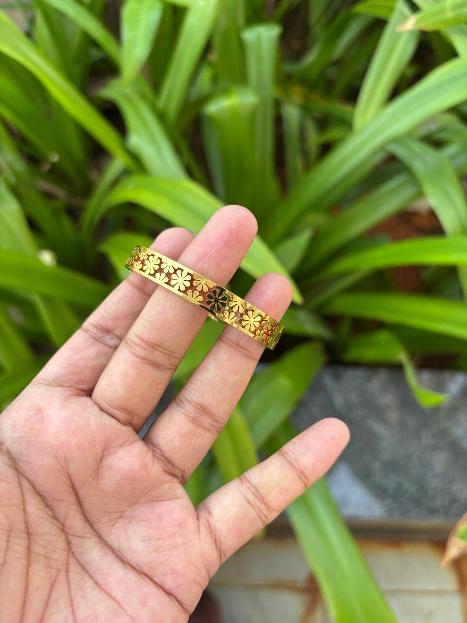 Beautiful flower design Golden open bangle✨suits 2,2.2 bangle size
