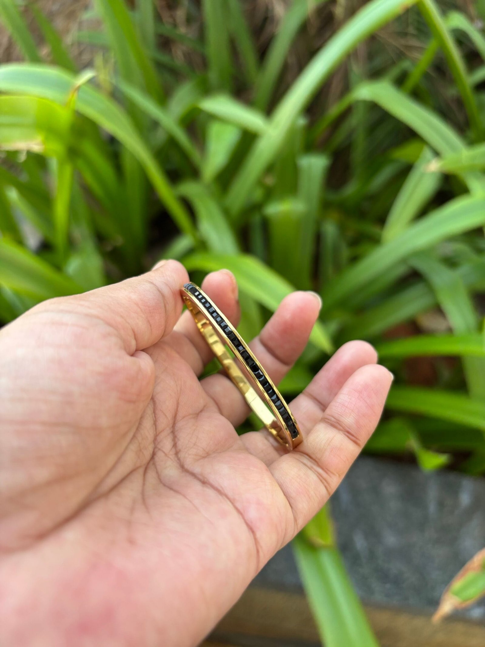 Be the first to review “Beautiful black stone Golden open bangle ✨Diameter 5,5.5cm suits 2,2.2 bangle size”