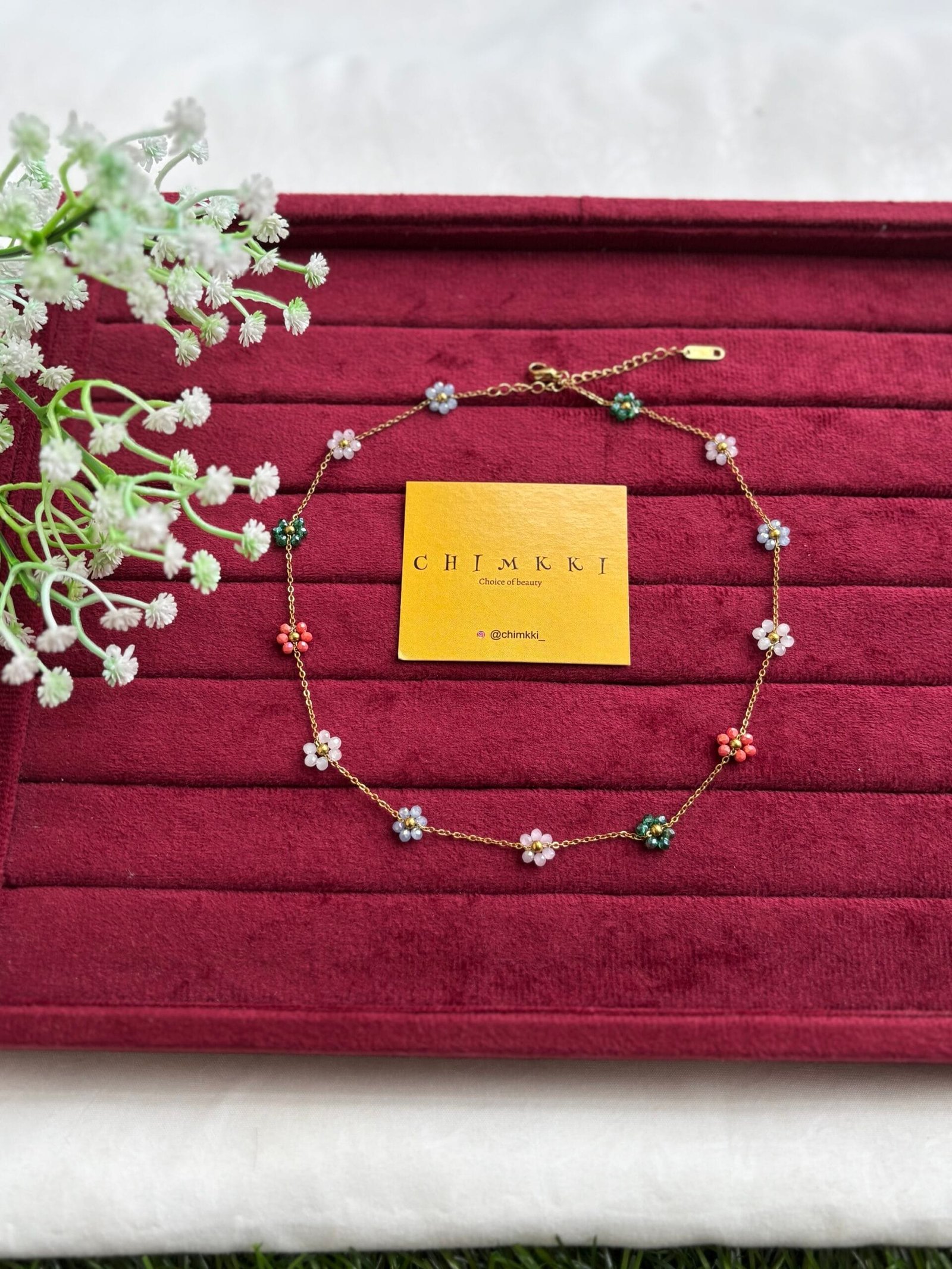 Be the first to review “Stainless steel Beautiful multicolour flower design Golden Necklace 🌸 1319”
